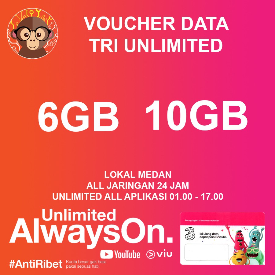 Paket unlimited 3 2021 dilengkapi daftar harga paket internet tri unlimited termurah serta kuota unlimited 3 beserta cara daftar, syarat ketentuan, dan fup. Paket internet 3 tri murah sangat populer di tahun 2020 berkat adanya paket aon 3 (always on). Paketnya terbagi atas alwayson, internet unlimited dan juga unlimited alwayson yang dapat dibeli oleh pelanggan prabayar 3 sesuai ketentuan berlaku. Aktivasi tri alwayson dan unlimited alwayson melalui *123# atau aplikasi bima+. Namun promo paket murah ini. Paket unlimited berlaku 24 jam setiap harinya. Paket internet tri unlimited adalah paket sepuasnya yang diberikan oleh provider tri untuk para penggunanya tanpa ada batasan kuota dengan di dalam paket internet tri unlimited para pengguna bisa membeli tri unlimited 1 jam, tri unlimited 3 jam, tri unlimited 12 jam, dan tri unlimited 24. Paket internet tri unlimited 3 jam ini memberikan kebebasan penuh kepada pengguna untuk melakukan aktivitas berbasis internet selama 3 jam. Keepon 16gb + viu premium, harga 50 ribu rupiah kuota reguler 24 jam 5gb (30 hari) bisa digunakan disemua jaringan dan kuota streaming 24 jam 11gb (30 hari). Selain paket internet tri unlimited yang sudah tidak asing lagi di masyarakat, ada juga paket++ netmax yang mana di didalamnya terdapat kuota++ kenyang kuota utama 24 jam: Kamu tetep bisa eksis di instagram, facebook, twitter, whatsapp, line, streaming youtube, netflix, dan main game di pubg, free fire, aov, call of duty sampai mlbb. Paket data tri bulanan termurah dijual seharga rp 24.000 dan berisi kuota internet 3 tri 650mb. Kuota internet dapat digunakan full 24 jam tanpa ada pembagian waktu.